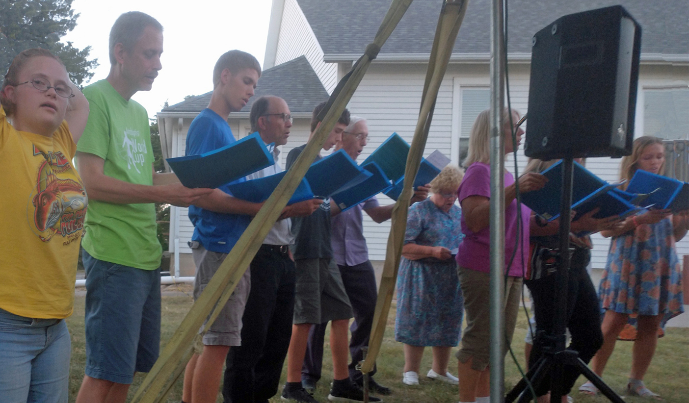Rod Huebert leads singing |